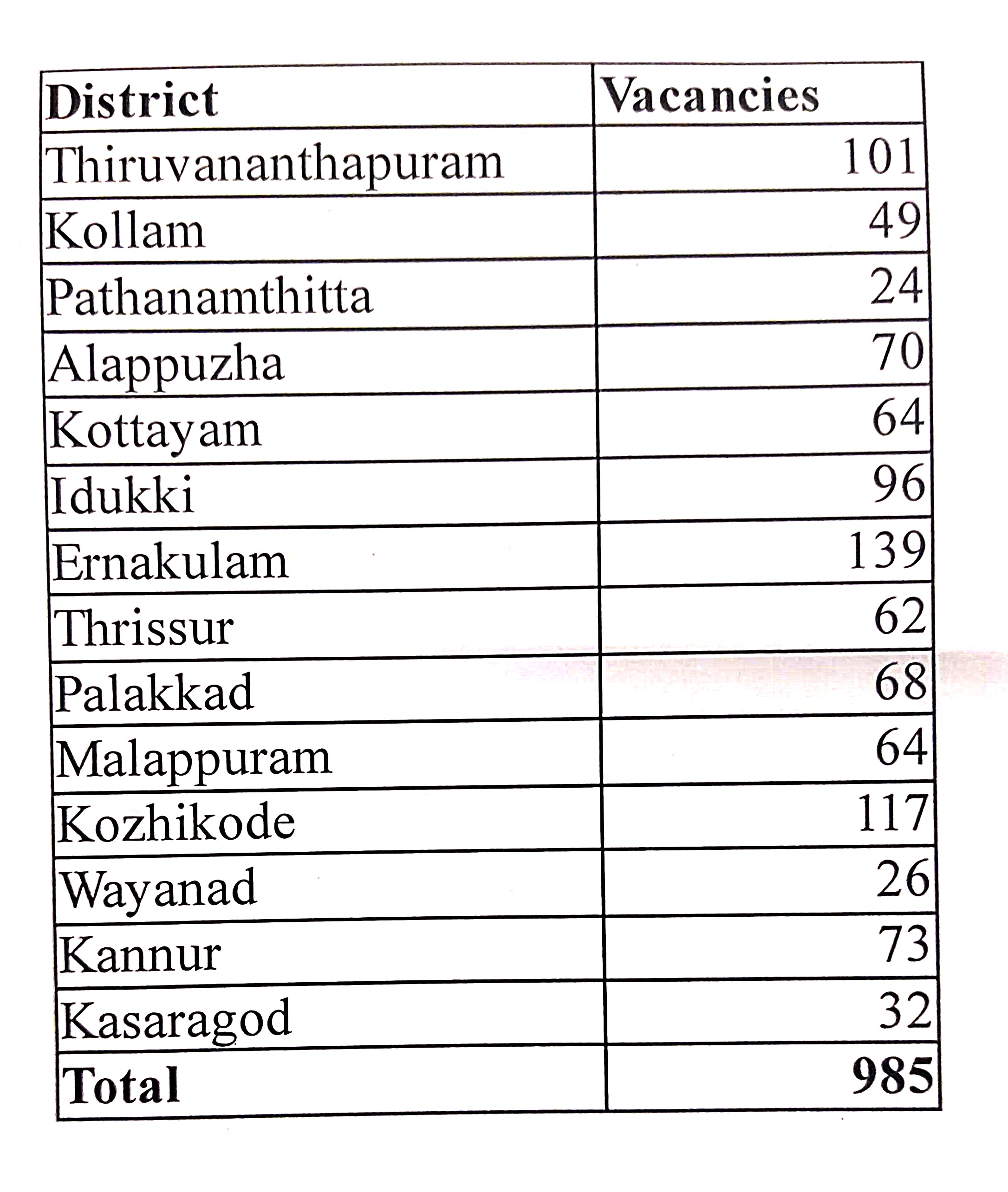 Electricity Worker Vacancy report - District wise